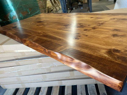 Pair it with our matching live-edge benches, finished in the same warm walnut tone, to complete the look and make room for everyone. Assembly is quick and straightforward—just a screwdriver or drill and the included hardware are all you need.